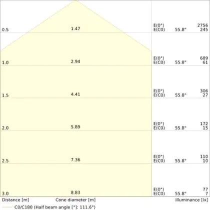 The colour code is a combination of colour rendering (CRI) and light colour (Kelvin). The first number indicates the colour rendering (1 = very poor colour rendering, 9 = maximum colour fastness). The second and third number contains the light colour. Example: the colour code 830 consists of good colour rendering (8) and warm white light (3000K). |
