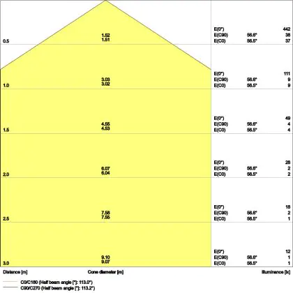 The colour code is a combination of colour rendering (CRI) and light colour (Kelvin). The first number indicates the colour rendering (1 = very poor colour rendering, 9 = maximum colour fastness). The second and third number contains the light colour. Example: the colour code 830 consists of good colour rendering (8) and warm white light (3000K). |