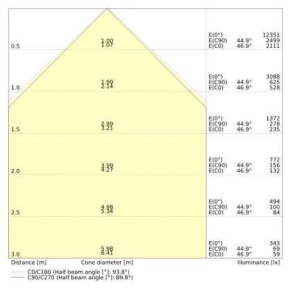 The colour code is a combination of colour rendering (CRI) and light colour (Kelvin). The first number indicates the colour rendering (1 = very poor colour rendering, 9 = maximum colour fastness). The second and third number contains the light colour. Example: the colour code 830 consists of good colour rendering (8) and warm white light (3000K). |