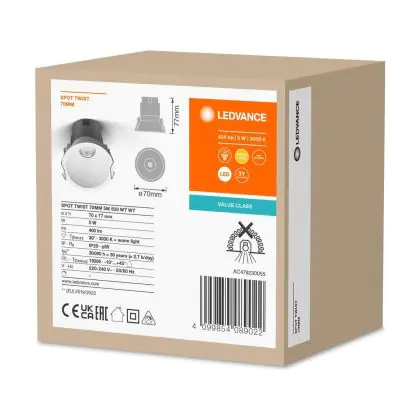 Ledvance LED Spot Twist Pro Aluminium White Reflector 5W 400lm 30D - 830 Warm White | 70mm - Cutout 65mm - IP20