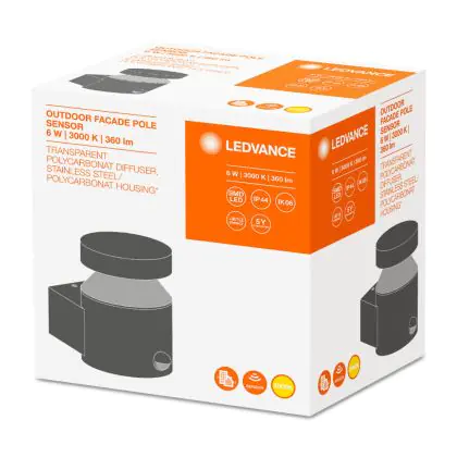 Ledvance LED Wall Light Outdoor Facade Pole 6W 360lm - 830 Warm White | Motion and Light Sensor