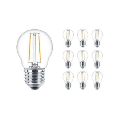 Multipack 10x Philips Corepro LED Lustre E27 Ball Filament Clear 2W 250lm - 827 Extra Warm White | Replaces 25W