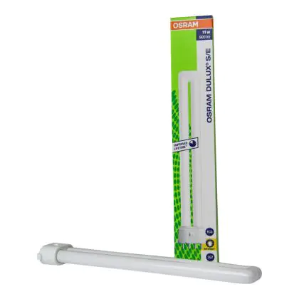 Osram DULUX S/E 11W/827 2G7 Lumilux Interna are fluorescent lamps with separate power supply compatible with conventional and ferromagnetic ballasts. These lamps are equipped with 4 pin sockets.