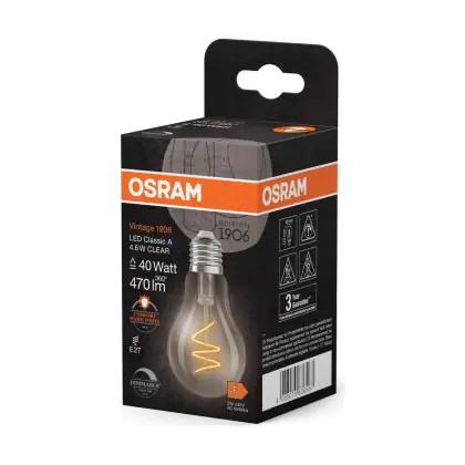 | Manufacturer Name | Vintage 1906 LED CLASSIC A,B,P SLIM FILAMENT DIMMABLE 4.6W 922 Clear E | |