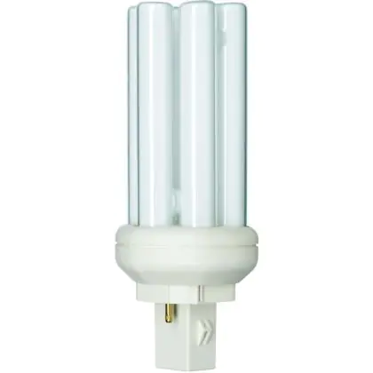 Philips PL-T 2P are compact fluorescent lamps with separate power supply. They are very energy efficient. The Philips PL-T 2P lamps must be used with a ferromagnetic ballast. With a length of 127 cm, Philips PL-T 18W 840 2P have a GX24q-2 socket, made of 4 pins.